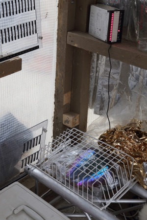 SEED is a boat covered by a reversible sequin texture, and converted in a space shuttle for the Biennale of interstellar art spaces of Geneva. This escpae rocket is part of the «Salta Base», name invented for the intervention of the «Epicerie de l’Agonie», association of Emmanuel Mottu. The Salta base was mainly a bar with flags and antennas (Bar des Héliotes by E. Mottu) , and an entrance module to it (an acrylic glass box).