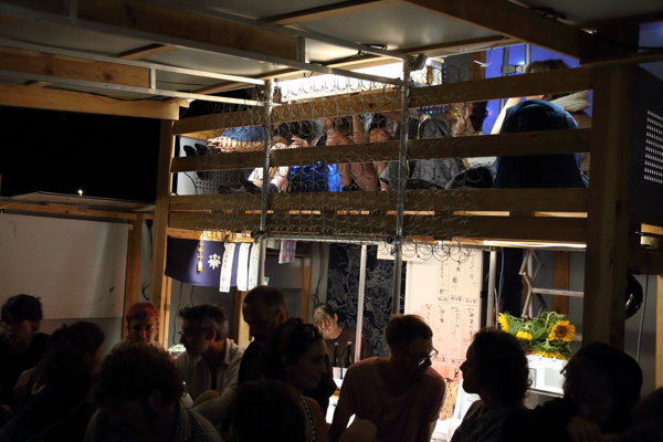 Belvedere for the Biennale BIG (intrepid). A place to rest, drink, eat, listen to music and enjoy the view. Animations in collaboration with Emmanuel Mottu (from Rayon Vide), Cyril Yeterian (from Bonjo Joe) , Marie-Eve Knoerle (Collectif fictif) and many special guests.